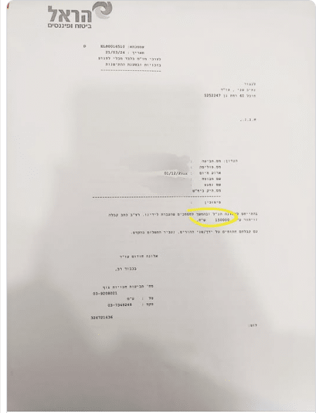 לאחר מו"מ שנוהל ע"י צוות המשרד חברת הביטוח הסכימה לשלם ללקוח פיצויים בסך של 150,000 ש"ח, בנוסף לסכומים שנתקבלו מהביטוח הלאומי.